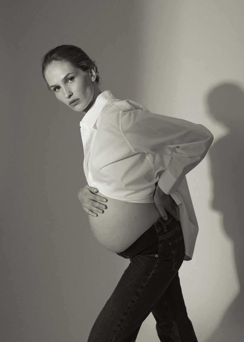 A style to wear all seasons and trimesters, pairing well with sneakers, heels or boots. For those who like a more fitted look to balance out the growing belly.