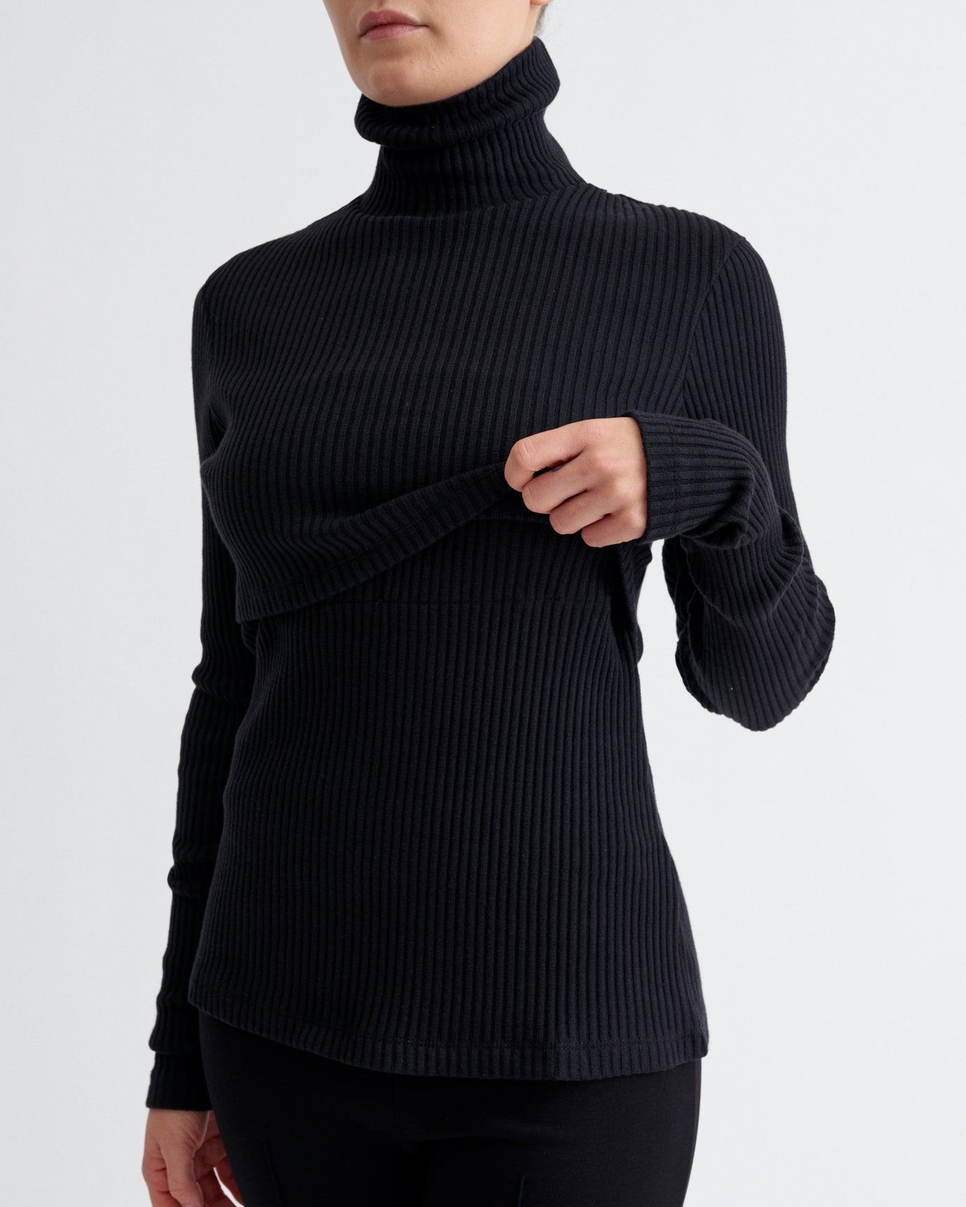 Ribbed Nursing Turtleneck Long Sleeve Knit