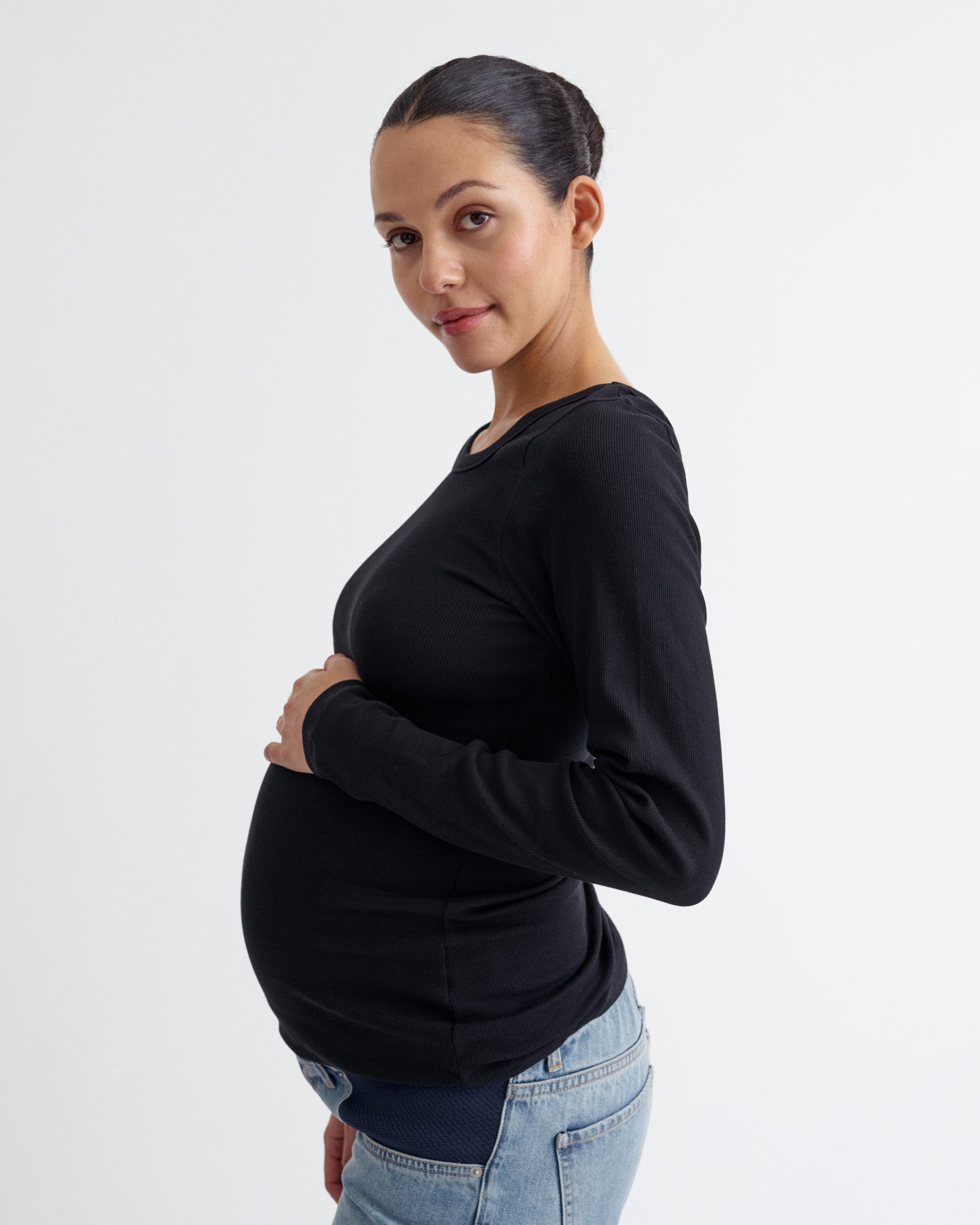 Ribbed Pregnancy Long Sleeve (Black/White)