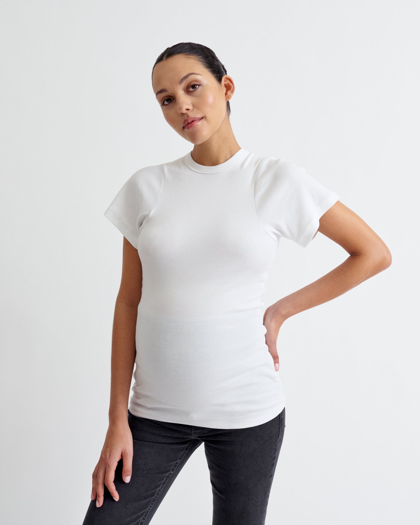 Ribbed Pregnancy Short Sleeve (Black/White)
